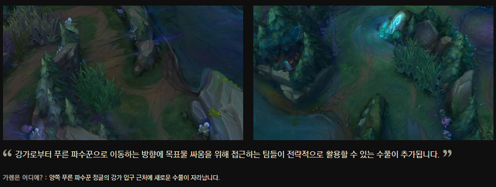 마지막 협곡 변경 사항은 강가 입구 수풀의 추가이다.