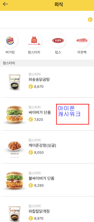 구글과 애플에서 요구하는 수수료의 차이인지는 모르겠으나, 너무나 큰 차이가 있어서 캐시워크의 경우에는 아이폰에서 너무 비효율적인 앱이라고 판단된다. 단순히 싸이버거 뿐만 아니라, 모든 상품에서 가격 차이가 있으니 아이폰 유저들은 좀 더 분발?(더 열심히 걷자) 해야 할 것이다.