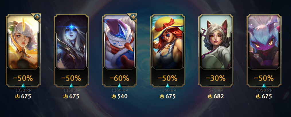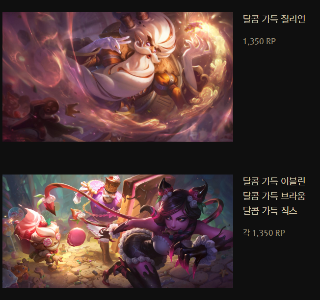 오 대박..드디어 사야하나...무과금 유저인데 이렇게 취향저녁 스킨이 많이나오다니...달빛 여왕 럭스, 우주 여왕 애쉬, 눈사람 마스터이, 수영장파티 미스포춘, 한복 아리, 꼬마 악마 트리스티나가 나왔다..꼬마 악마 트리스티나 정말 땡기는데...흠..