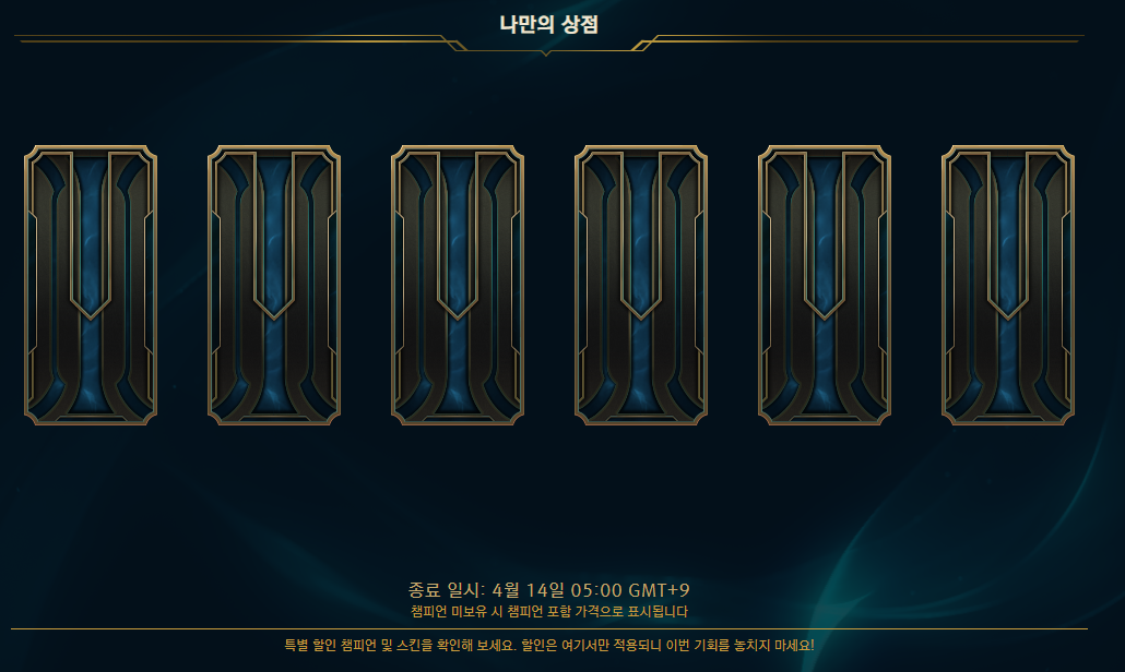 지난번 나만의 상점이 끝난지 얼마 안된거 같은데, 다시 나만의 상점이 열렸다. 2020년 1월 14일까지 오픈된다고 하니, 마음에드는 스킨이 있는 경우 주저하지 말기를 바란다. 나만의 상점에 대한 특징은 지난 글에 적혀 있으니 참고하시면 됩니다. 그럼 오픈!