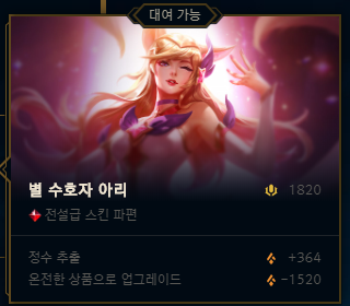 영광을 위하여 킬/어시스트 100회를 달성하여 마법공학 상자와 열쇠를 받았고, 열었더니 별 수호자 아리와 보석을 받았다..