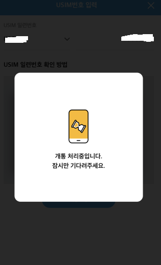 9. 같은 과정을 다시 반복했고, 배송 받은 유심으로 교체한 후,(아래와 같은 화면을 보기 전까지는 새로 배송 받은 리브 모바일 유심을 넣지 않도록 하자) 별도로 추가 입력할 것은 없었기 때문에, 아래와 같이 바로 개통을 완료 할 수 있었고, 개통 과정은 한 3분 정도 소요된 것 같다.