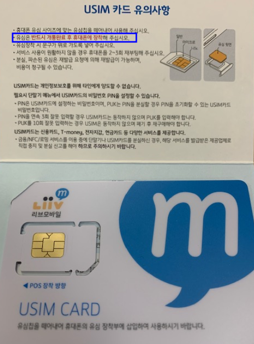 6. 유심이 도착했다. 유심발송 과정에 대한 설명이 현황 보기에서 가능하므로 큰 어려움없이 진행할 수 있다. 가입신청 시에 사용하는 휴대폰 기종을 물어보는데, 그런것과 상관없이 아래처럼 모든 사이즈의 유심에 호환되는 심카드를 보내준다.