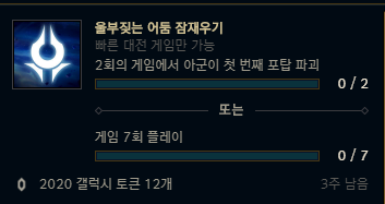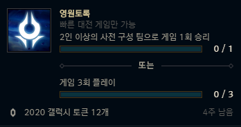 | 롤 2020 시즌 시작(2020 시즌 첫 임무) (1) | 2020.01.10 |