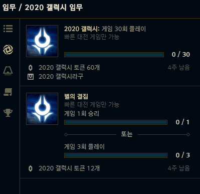 갤럭시패스에 문제가 생겼는지 그것에 대한 보상으로 무과금유저들에게도 한판만하면 갤럭시토큰 120개를 주는 추가 임무가 생성되었다. 열쇠2개를 얻을 수 있는 좋은 기회이니 잊지말고 접속하자