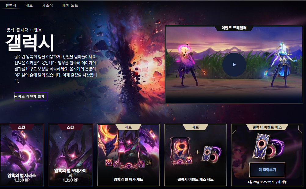 갑자기 임무창이 활성화되서 가봤더니 럭스의 운명을 결정하라고 한다. 갤럭시 패스 이벤트는 4월 28일에 종료된다고 하는데, 일단 나는 야망을 선택해봤다. 아래와 같이 갤럭시 임무가 활성화 됐는데, 바로 빠른 대전으로 게임 1회 승리를 하였으나, 임무 종결이 안된다. 흠..무과금 유저는 안되는건가?. 예전에도 종종 게임 종료 후 바로 적용되지 않은 경우가 있었으니 일단 기다려 봐야 겠다.