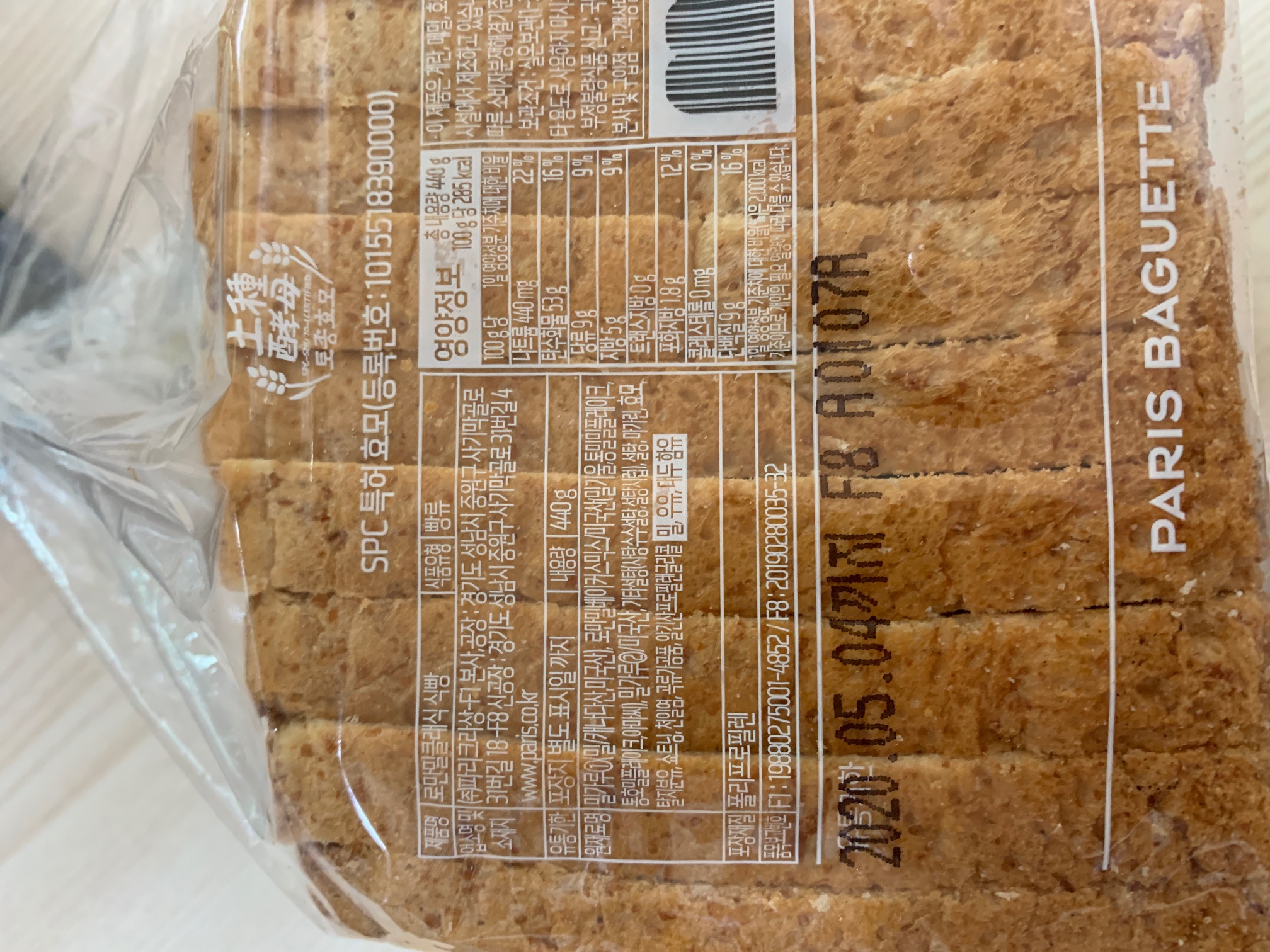 좀 더 살펴보자. 총 440g에 칼로리는 1255kcal, 로만밀 베이커믹스가 7.8%들었는데 이건 밀기울 50%, 통밀 밀플레이크가 28.9% 비율로 들어있으며(삼립은 로만밀 베이커믹스가 9.06%에 밀기울 4.53%와 통밀플레이크 2.61%, 통호밀 플레이크 1.9% 함유됨) 토종효모도 2.3% 함유되어 있다. 그외 기타설탕(사탕수수설탕,설탕시럽),설탕, 마가린, 효모,탈지분유,쇼트닝,천일렴,곡류가공품,알긴산프로필렌글리콜이 함유되어 있다.