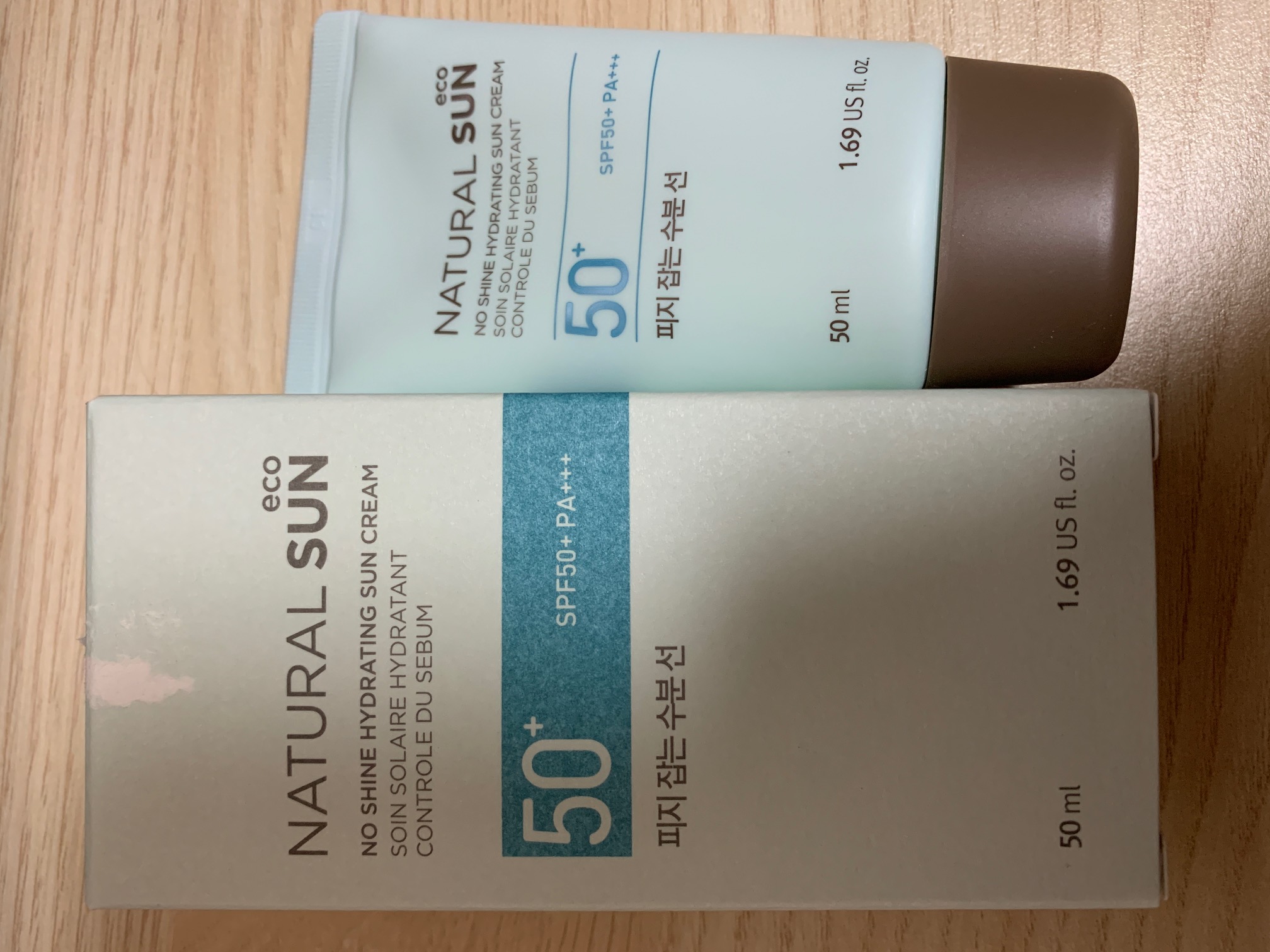 다음은 페이스샵 내추럴 선 에코 피지 잡는 수분 선. 가격은 15000원으로, 50% 적용되서 내추럴 선 에코 피지 잡는 선 프라이머를 같이 받아왔다. SPF50+에 PA+++로 위의 제품보다 1단계 낮지만, 충분히 높은 수준의 제품이다. 아웃도어 선 수티드 보다는 좀 더 크림에 가까운 질감이고 냄새도 부담되지 않는다. 좀 더 크림에 가깝지만 얼굴에 바른 후에 손에서 끈적거리는 느낌이 많지 않으므로, 사람에 따라 별도로 손을 씻지 않아도 될 수 있을 정도이다. 3월, 4월에는 이 제품이 촉촉함을 더해줘서 좋았는데, 25도씨 넘어가니까 조금 답답한 느낌을 주기도 했다.