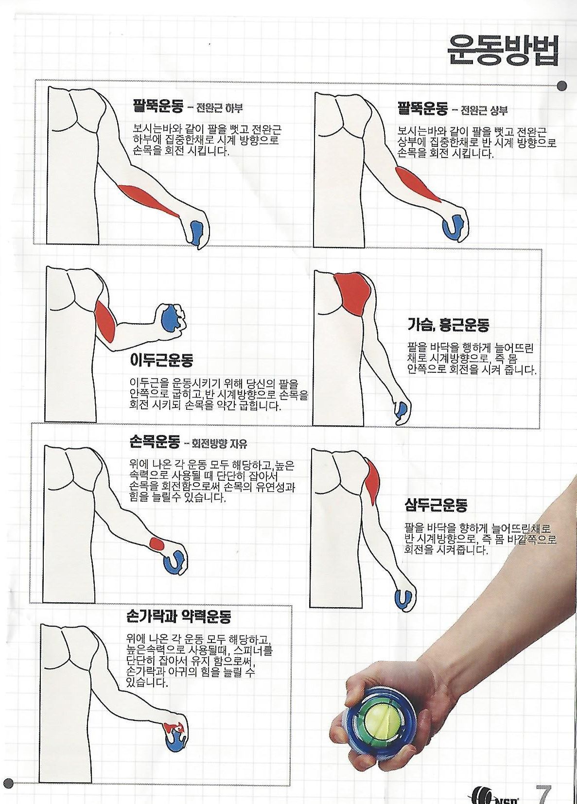 실제 돌려보면 시계 방향이건 반시계 방향이건 팔뚝과 손아귀는 계속 힘이 들어간다는 것을 느낄 수 있다. 아래는 판매처에서 보내준 자세별 운동에 대한 그림이다.