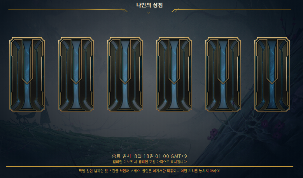 영혼의 꽃 이벤트와 동일한 시기에 나만의 상점이 열렸다. 나만의 상점이 활성화되어 있음을 확인 할 수 있다. 종료 일시는 8월 18일 새벽 1시까지다.
