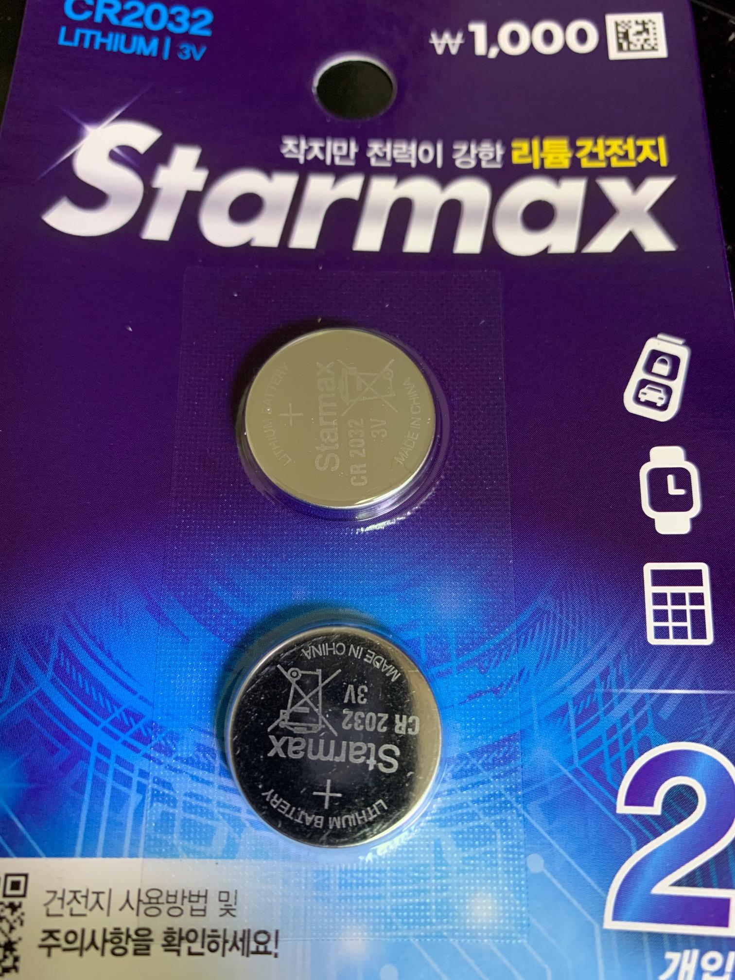 다행히도 어떤 건전지인지 잘 표시되어 있었고, 다이소에서 같은 배터리 2개를 천원에 구입후, 자동차키 2개 모두 교체했다. 너무나도 간단한 자동차키 배터리 교체 방법이었다.
