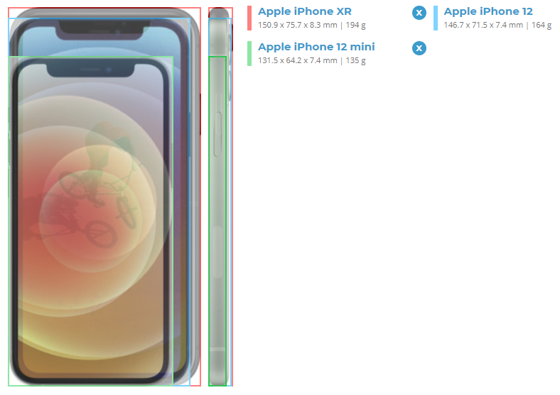 아이폰 12 미니의 가장 큰 장점은 무게로서, 아이폰 SE2보다 가로 화면이 더 긴대도 불구하고 무게가 133g 밖에 안되고(아이폰6가 130g대, 아이폰7이 138g 정도였음), 거의 풀스크린 형태를 가지고 있다는 것이다.