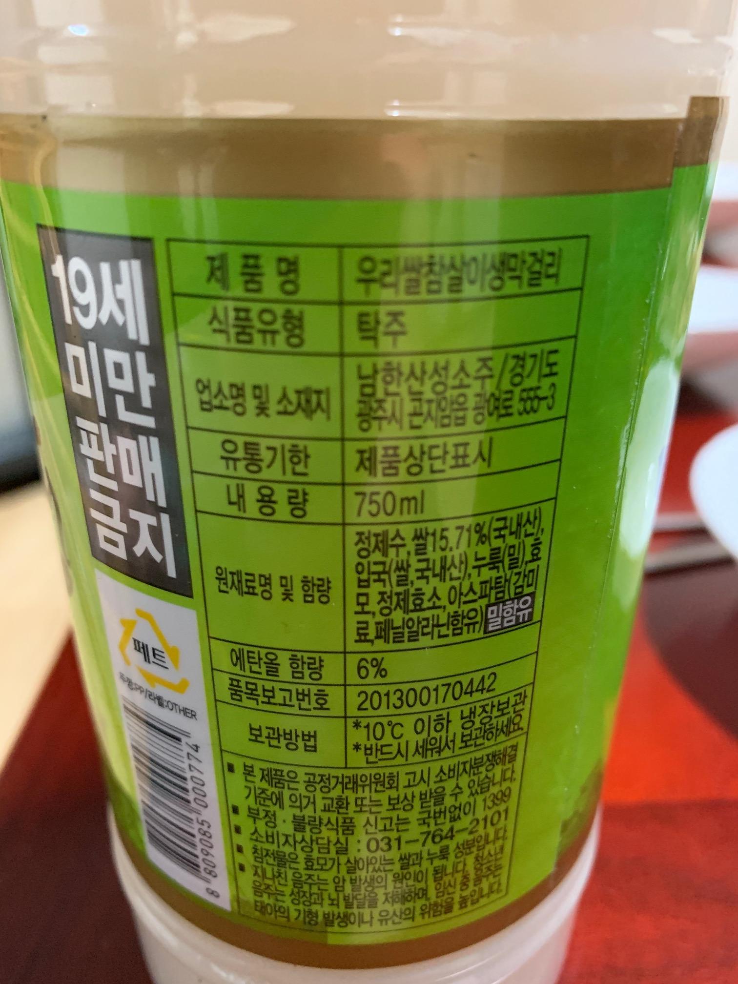 아래 사진에서와 같이 국내산 쌀이 15.7%나 들어있기 때문에, 일단 막걸리의 베이스가 되는 쌀은 괜찮다고 볼 수 있다. 장인이 빚어 부드러운 맛이 있다고 하는데, 실제로도 그렇다. 목에 걸리는 느낌없이, 아주 잘 섞여서 목넘김이 좋다.