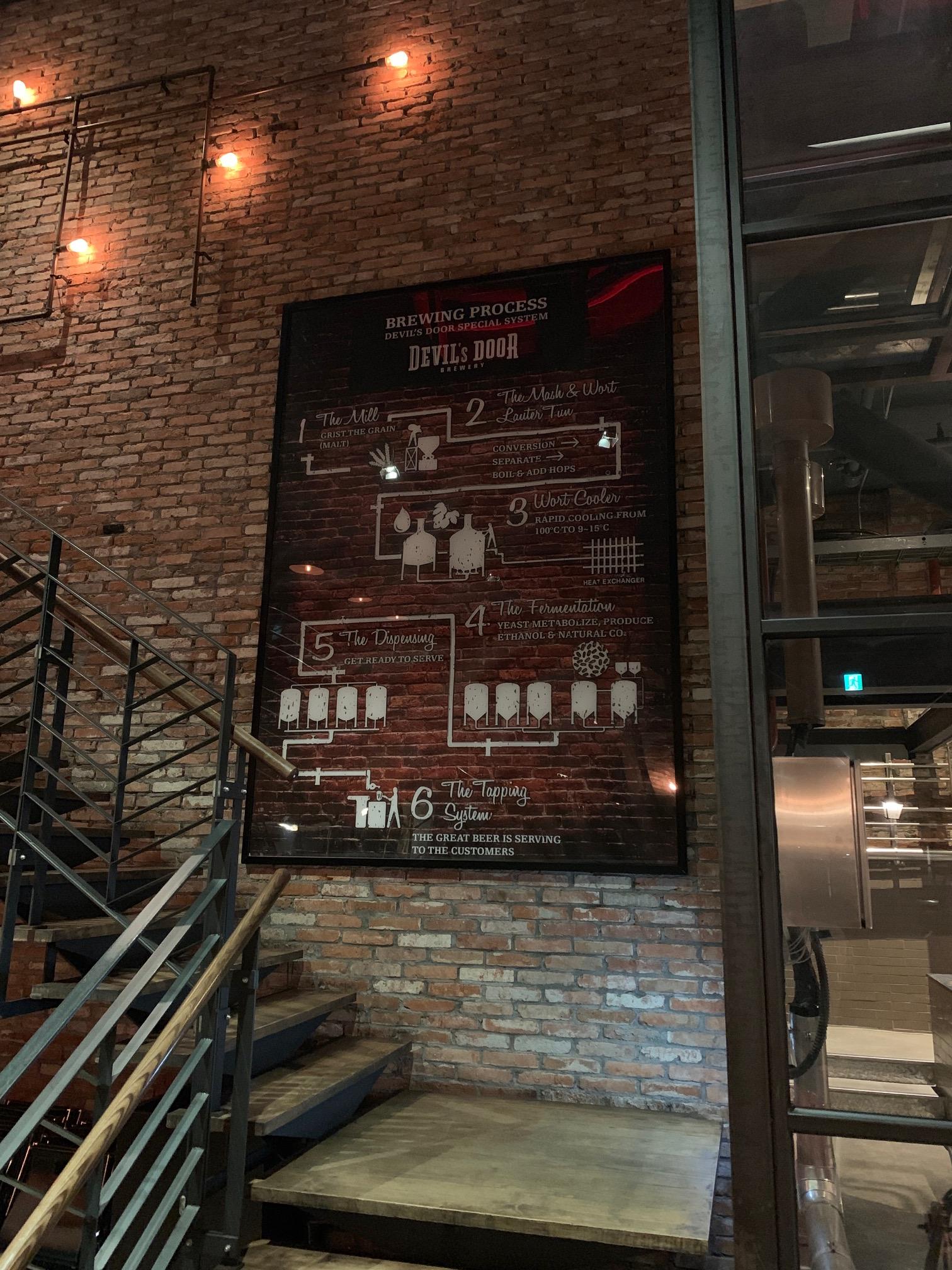 다른 지점은 모르겠고, 데블스도어 센트럴시티 점의 분위기는 정말 어썸이다. 간단하게 사진 몇장만 보자. 아래는 맥주 만드는 프로세스를 간단하게 그림으로 보여주고 있다.