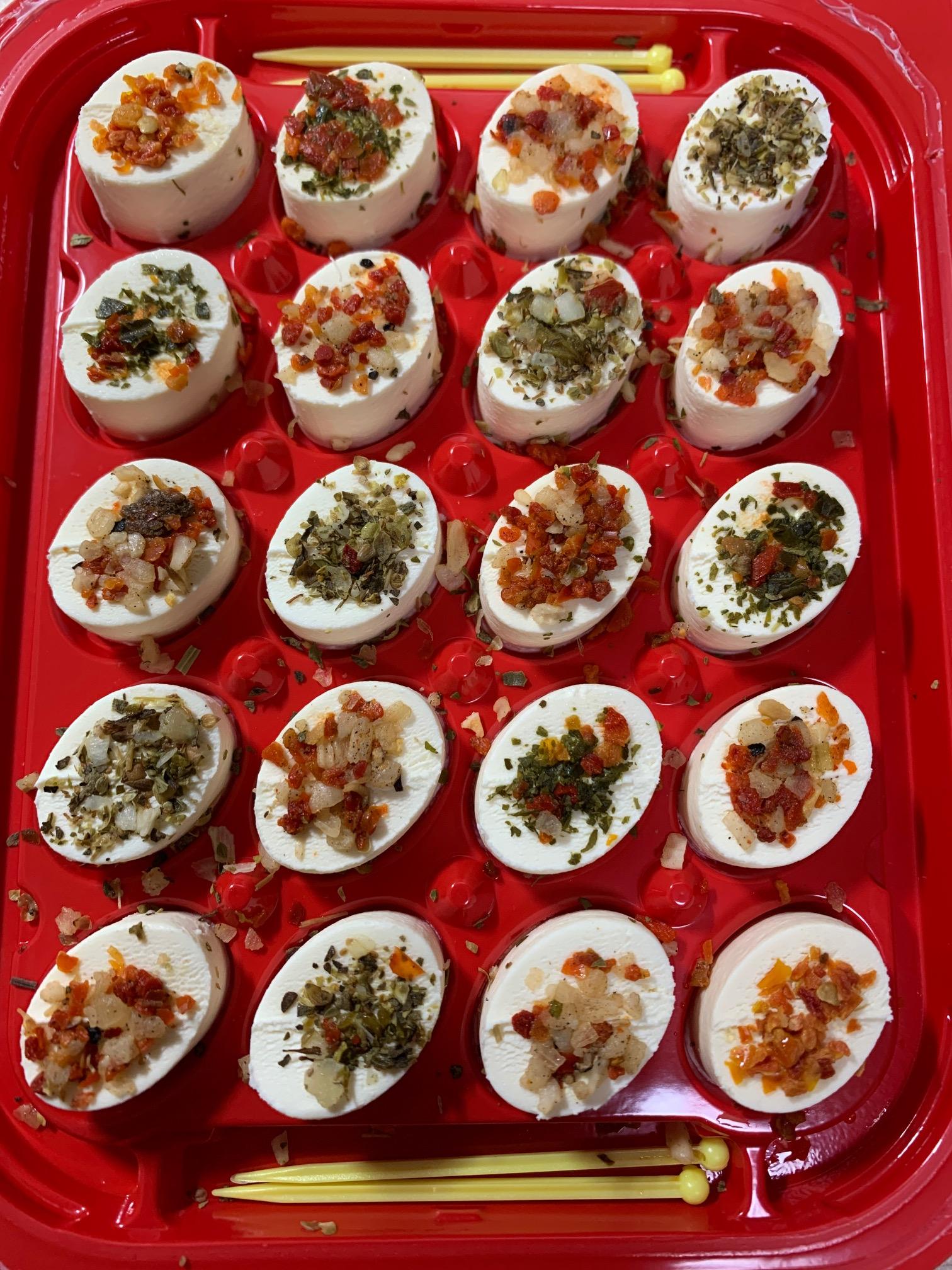 한 입 사이즈에다가 꽤 여러 구성으로 되어 있어서, 올려진 재료에 따라 과일치즈 마냥 달달한 맛도 있을 것으로 아주 살짝 기대했는데 전혀 아니다. 내 입에는 뭘 먹든 그냥 짜다. 차라리 그냥 까망베르 치즈만 먹는게 더 좋았을법하다. 아쉽지만 이번 안주는 실패다.