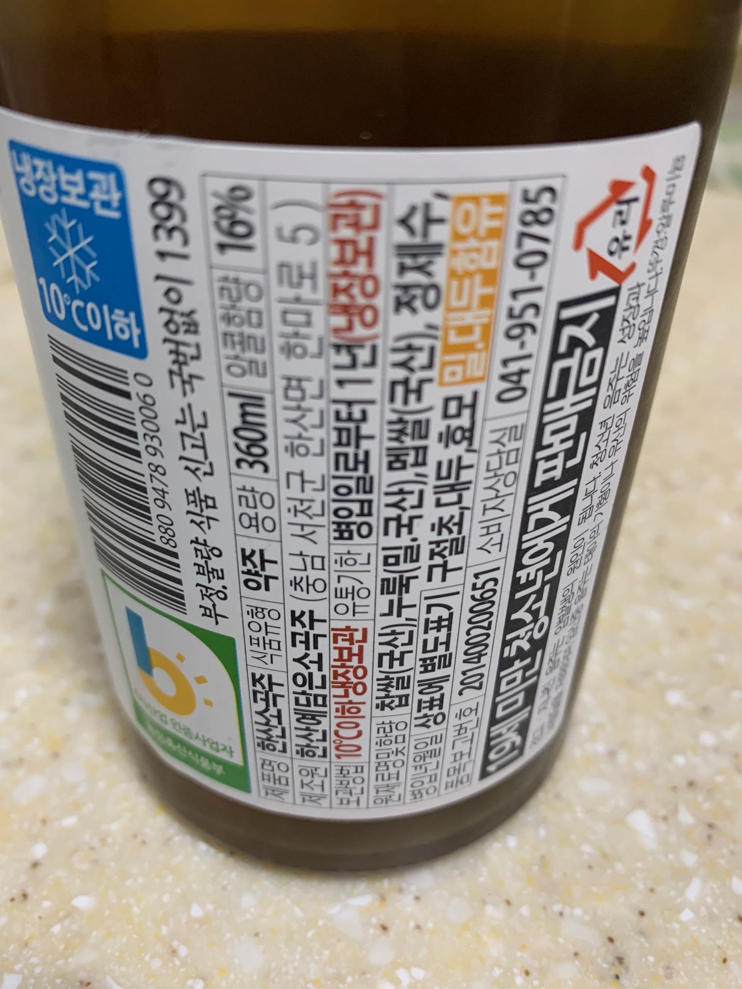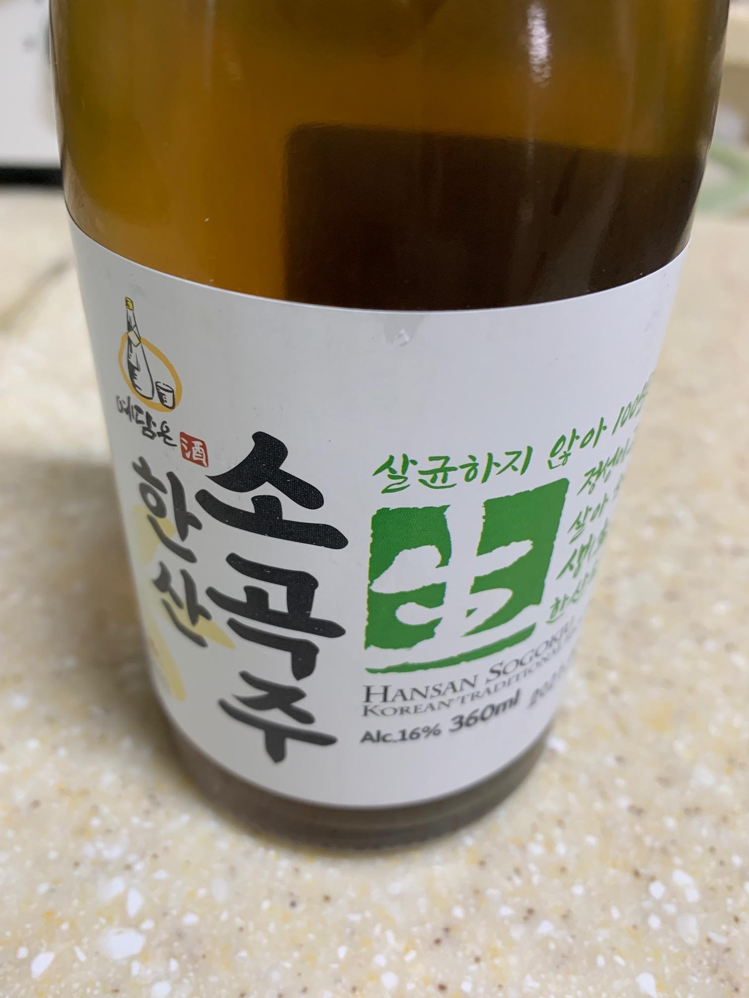 처음으로 한산소곡주를 먹었다. 말로만 듣던 바로 그술. 도수는 16도이고 용량은 360ml로 일반적인 소주 크기보다는 약간 더 큰 편이다. 색은 보이는 것과 아주 비슷하다.
