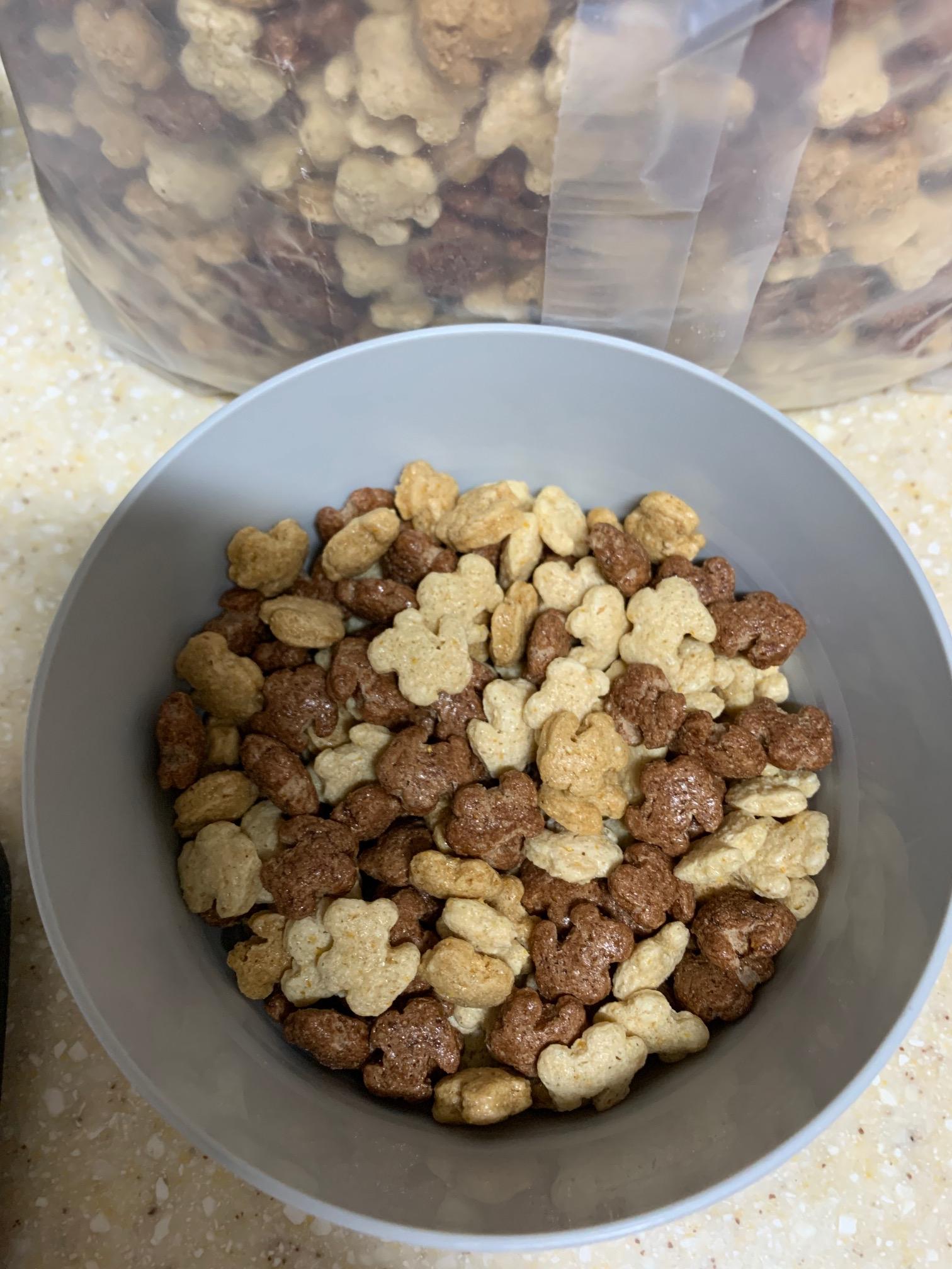 평상시에 좀 비싸긴한데, 성분을 고민하면 왠만하면 이 제품을 구입하고 있다. 할인한다면 무조건 몇개씩 집어오는 것을 추천한다. 생김새는 아래와 같은데, 다른 시리얼들처럼 우유랑 같이 먹으면 꿀맛이다. 마트에 자주 보이는 후레이크류의 시리얼이나 첵스와는 다른 식감을 가지고 있다. 알갱이 하나의 크기가 크지 않아서 먹기에도 좋다고 생각한다.
