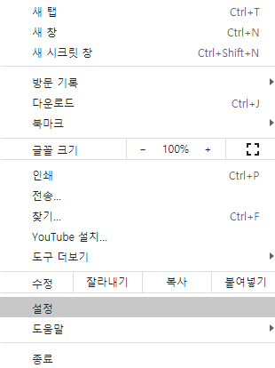 자 이결 해결해보자. 아주 심플하다. 나는 크롬 사용중이므로, 아래와 같이 설정에 들어간다.