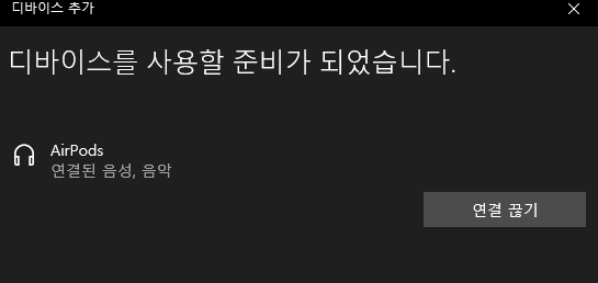 아이폰 음악을 끄고, 노트북에서 설정-블루투스에서 연결을 누르면 바로 노트북의 소리가 에어팟으로 들려오고,