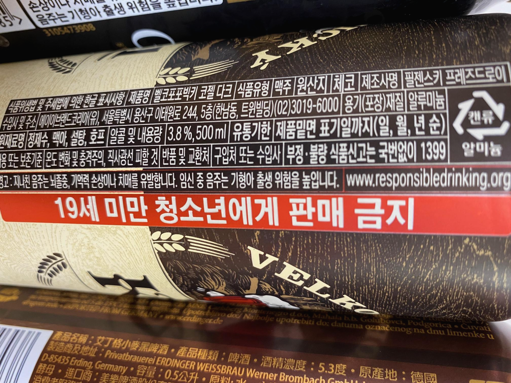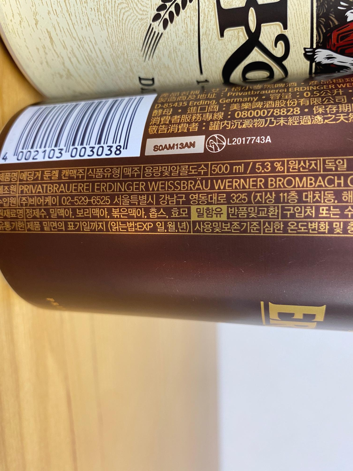 마지막으로 에딩거 둔켈은 정제수, 밀맥아, 보리맥아, 볶은맥아, 홉스, 효모가 들어있고, 도수는 5.3도이다.