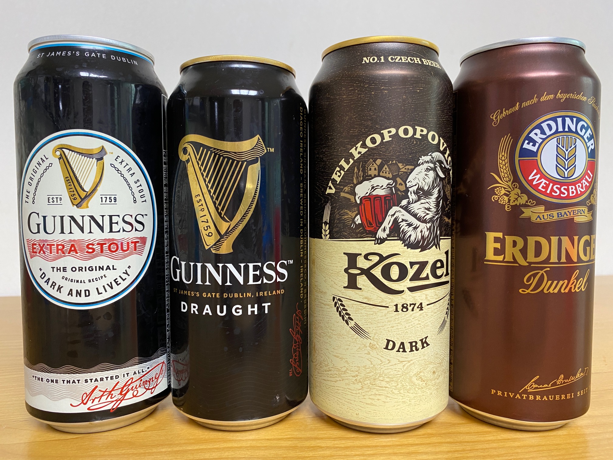 오늘은 흑맥주 4종 및 이마트 윙봉 후기를 써볼까 한다. 맥주는 아래와 같이 기네스 엑스트라 스타우드, 기네스 드레프트, 코젤 다크, 에딩거 둔켈 순서이다.
