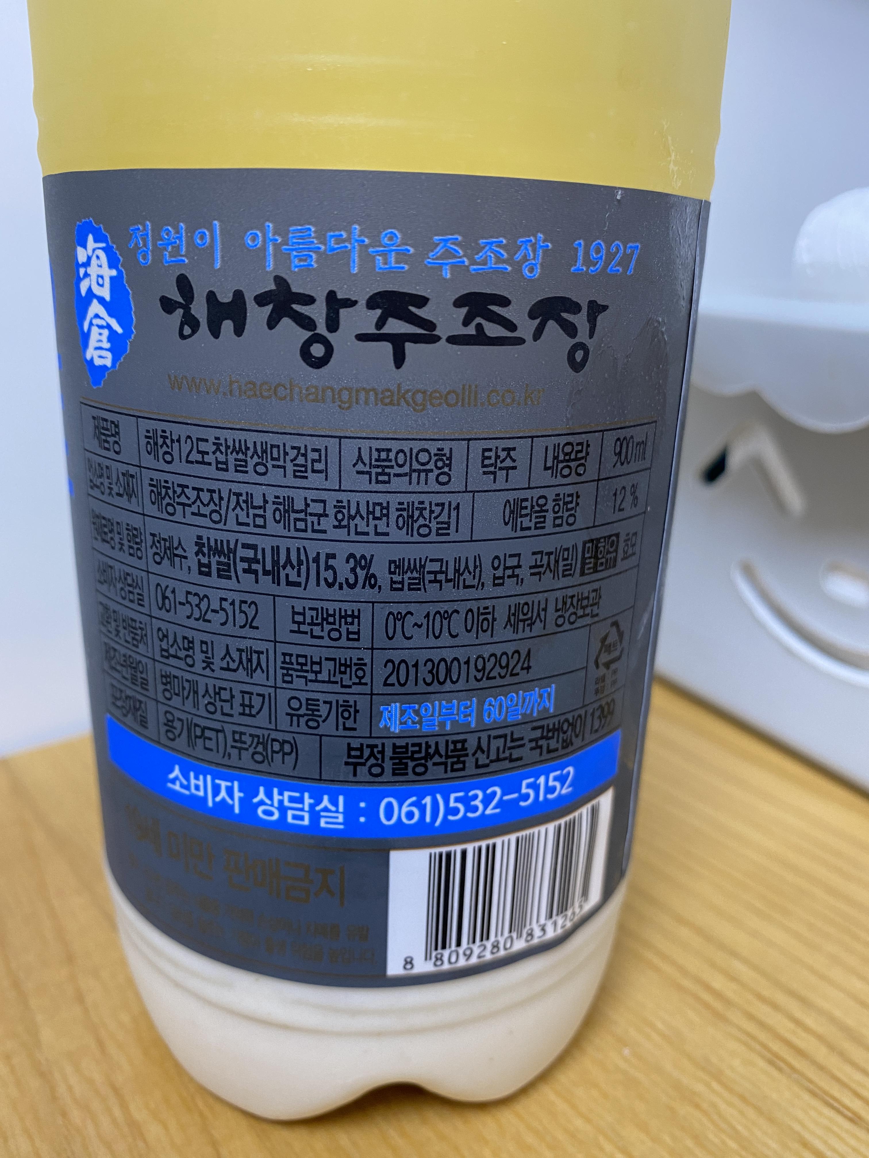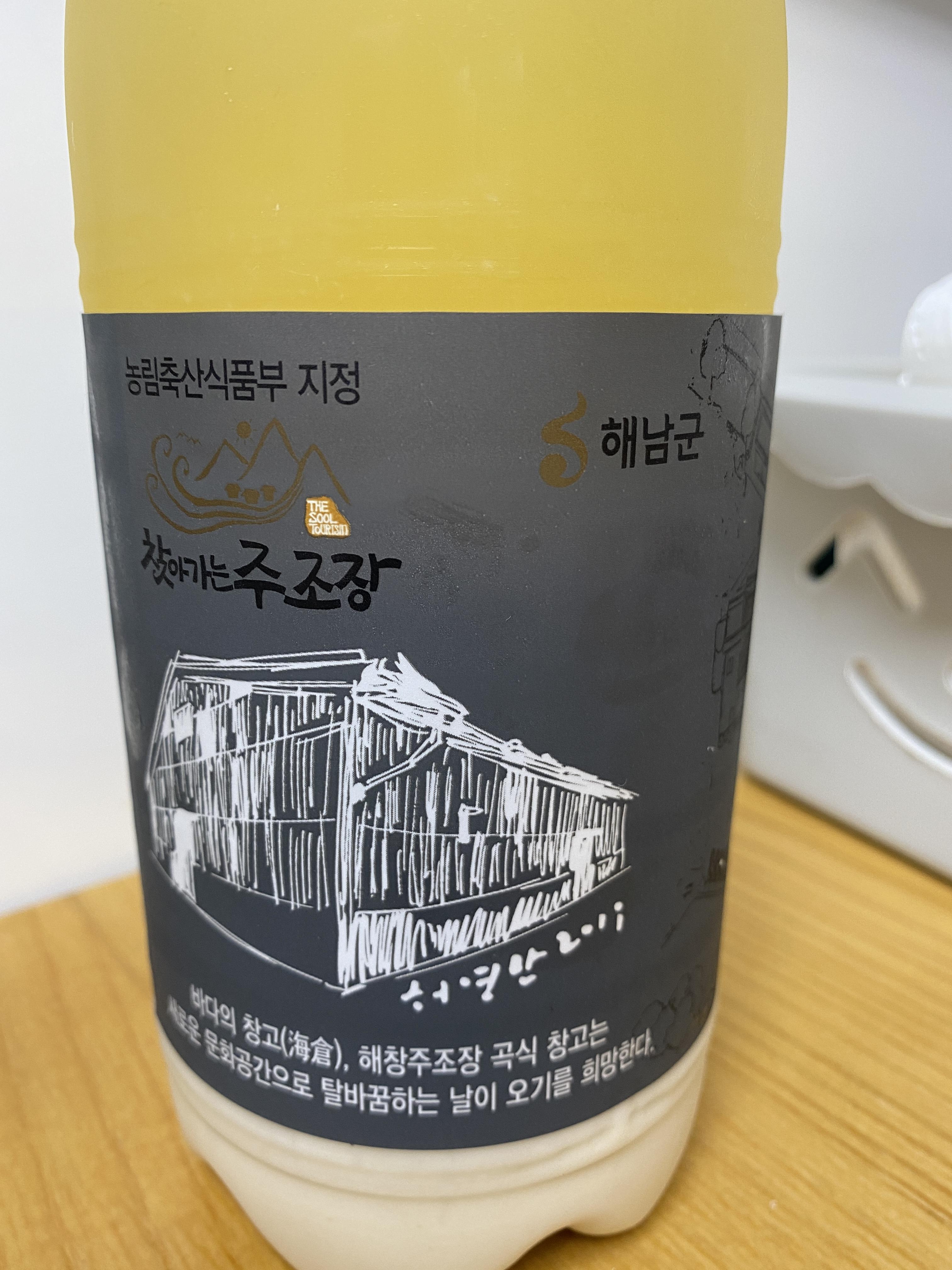 해창 막걸리는 유통기한이 한달인데, 나는 딱 보름지난 상태에서 먹었다. 우선 섞기 전의 상태를 보자. 지난번에 먹었던 대대포보다 더 노란색임을 볼 수 있다.