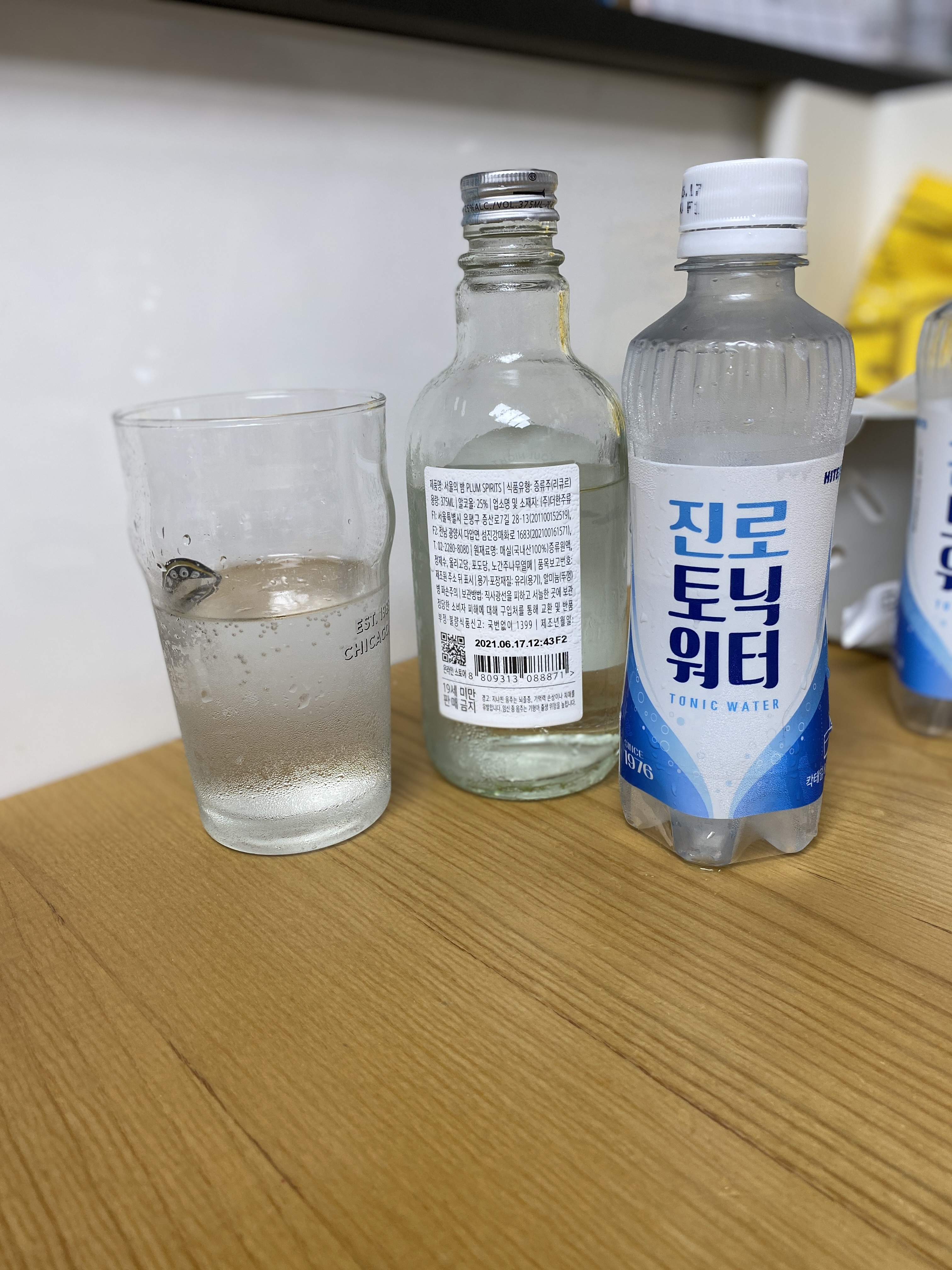 바로 토닉워터와 함께 먹기로 결정했다. 역시. 보드카에 타먹어도 맛있고, 드라이진에 타먹어도 맛있는 토닉워터!!!