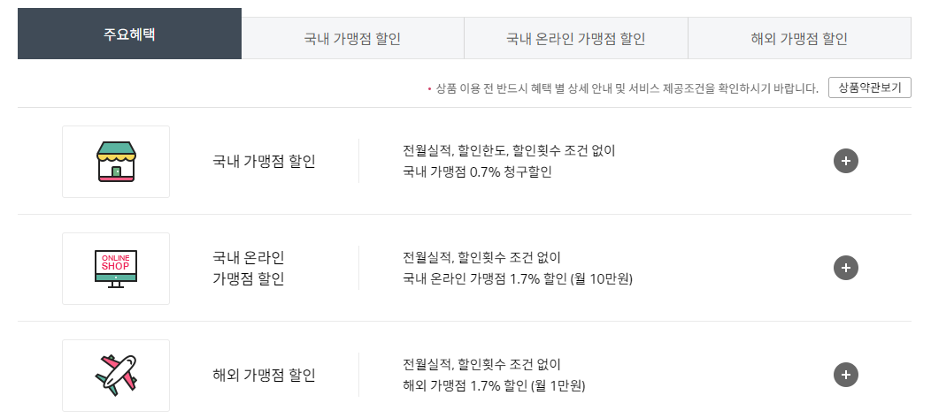 주력 체크카드인 페이코 1.5%까지 적립이 되는데, 이건 온라인에서 1.7%까지 적립이 가능하다. 네이버페이와 찰떡인 카드로 보인다. 간편결제에 등록시켜 놓고 바로 사용하면 될것같다. 귀찮게 이것저것 맞춰서 구입할 필요없이 필요할때만 무실적으로 결제. 물론 연회비 1.5만원이 있기 때문에, 연 100만원 결재를 해야 2천원 이익에 불과하다.