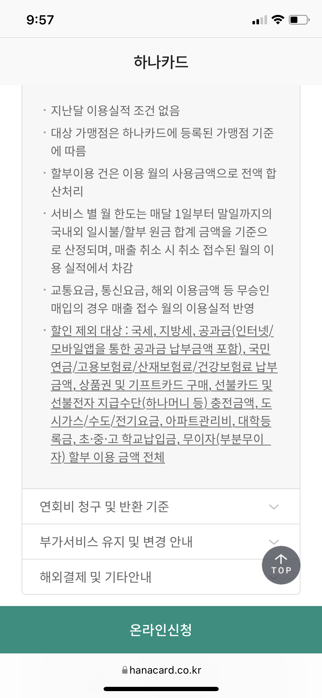 1. 행사 직전 6개월 동안 하나 신용카드 결제 이력이 없어야 한다. - 처음으로 만드는 하나카드임 ok