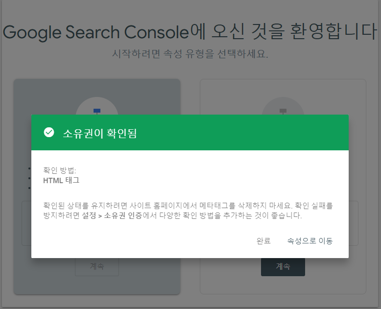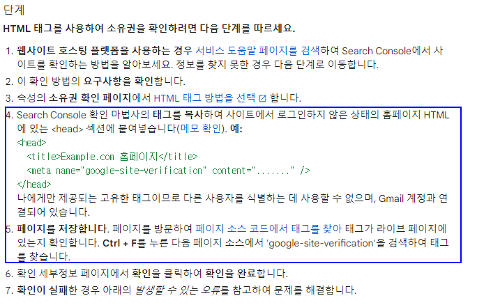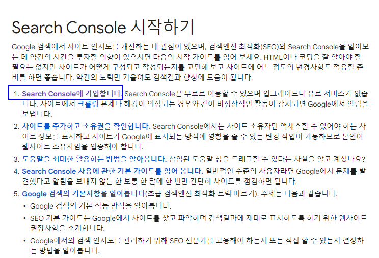 드디어 서치콘솔에 가입하라는 말이 나온다.