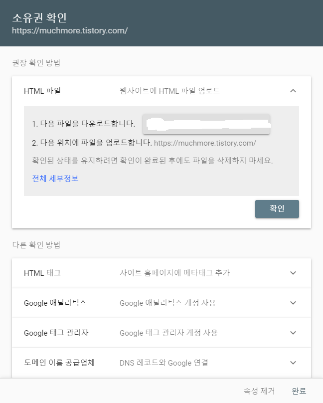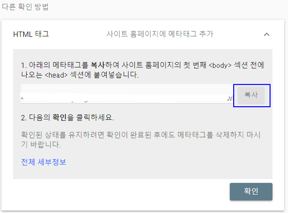 이거는 본인 블로그의 설정 > 스킨 편집 > html 편집에서 붙여넣고, 적용 누르고 저장 한 후에, 다시 이전의 과정으로 넘어가서 계속을 누르면 소유권이 확인된 것으로 나온다.