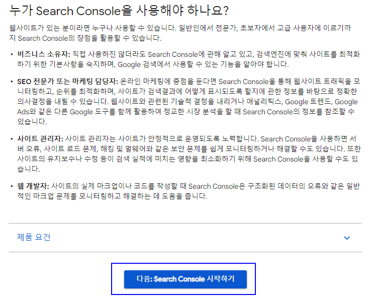 이런 사람들이 사용하면 된다고 하는데, 그냥 그럴싸한 내용일 뿐이므로, 바로 서치콘솔을 시작해보자.