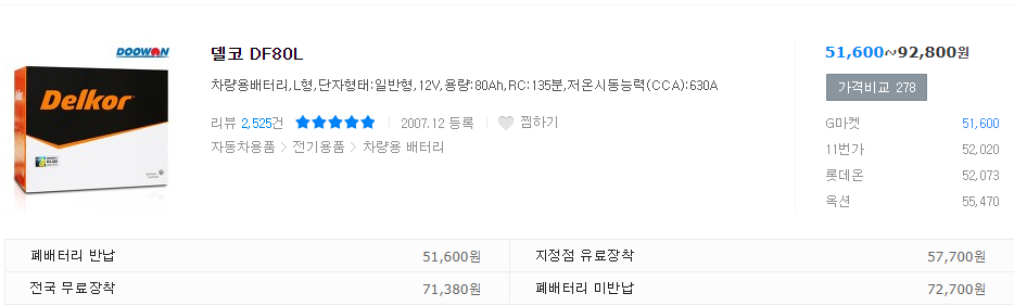 내가 이번에 선택한 모델은 델코 DF80L로 나랑 같은 차량을 가진 사람들이 이 제품으로 많이 사용한다는 것을 확인하고 과감히 주문을 했다.