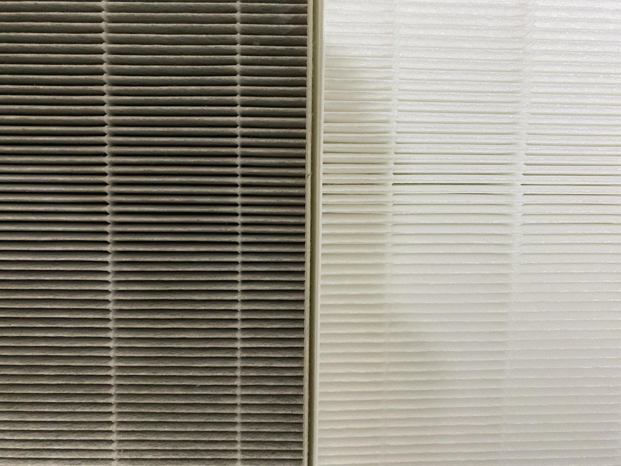 처음에 먼지망을 꺼냈을때, 먼지가 엄청나게 많았음에도 불구하고, 필터가 생각보다 깔끔해 보여서 교체해야되나 고민을 좀 했었는데, 막상 박스에서 새로운 필터를 꺼내고 나니 생각을 잘못한 것이 확실해졌다. 왜 요즘은 필터 색이 회색으로 된것들도 있지 않은가? 그래서 오해를 했나보다. 새 필터와 먼지먹은 필터는 누가봐도 명확하다. 오른쪽이 새것이다. 이렇게 하얗던 것이 왼쪽처럼 변한 것이다...(미안하다 나의 폐야...)