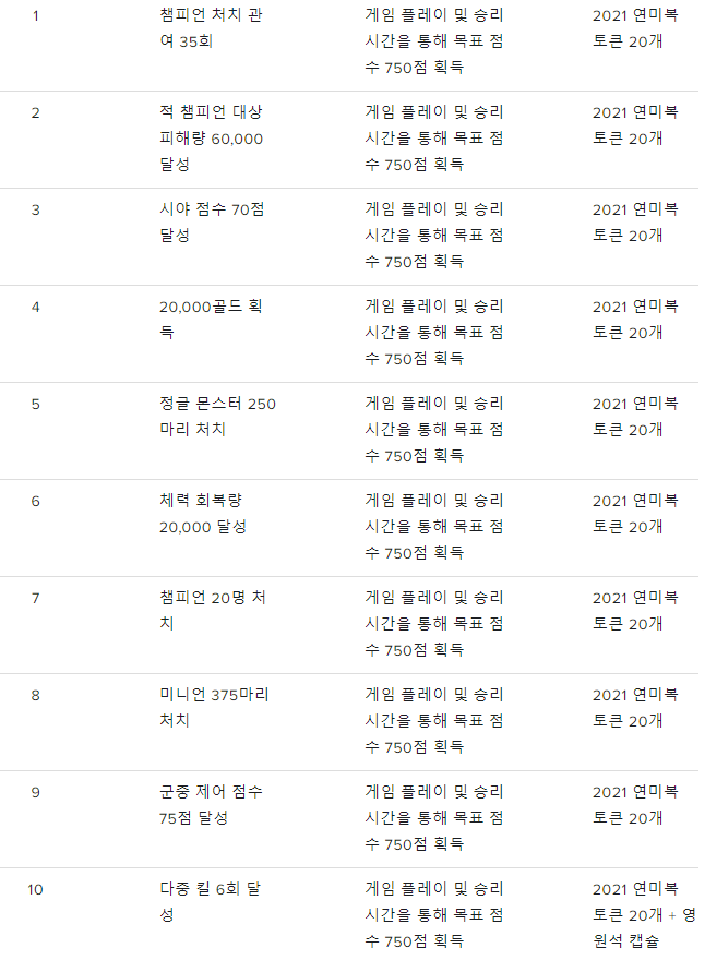 무과금 유저는 아래와 같은 임무 수행과 보상을 획득할 수가 있다.