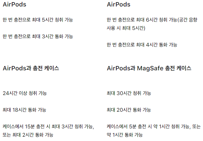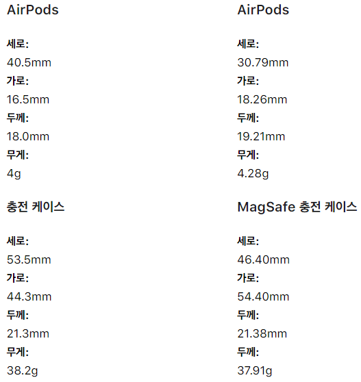 수치상으로는 이정도 차이가 난다고 한다. 다만 무게 차이는 거의 느낄 수 없다. 오른쪽이 에어팟 3세대이다.