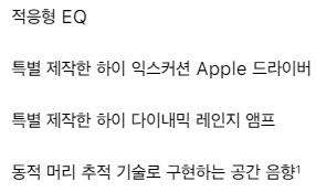 아래와 같이 에어팟 프로에서 적용됐던 기술이 들어갔으니, 당연히 좋아질 수 밖에...에어팟 프로와 헤드의 모양이나 크기가 비슷한것을 보면 당연히 들어갈 기술이 들어간 것으로 보인다.
