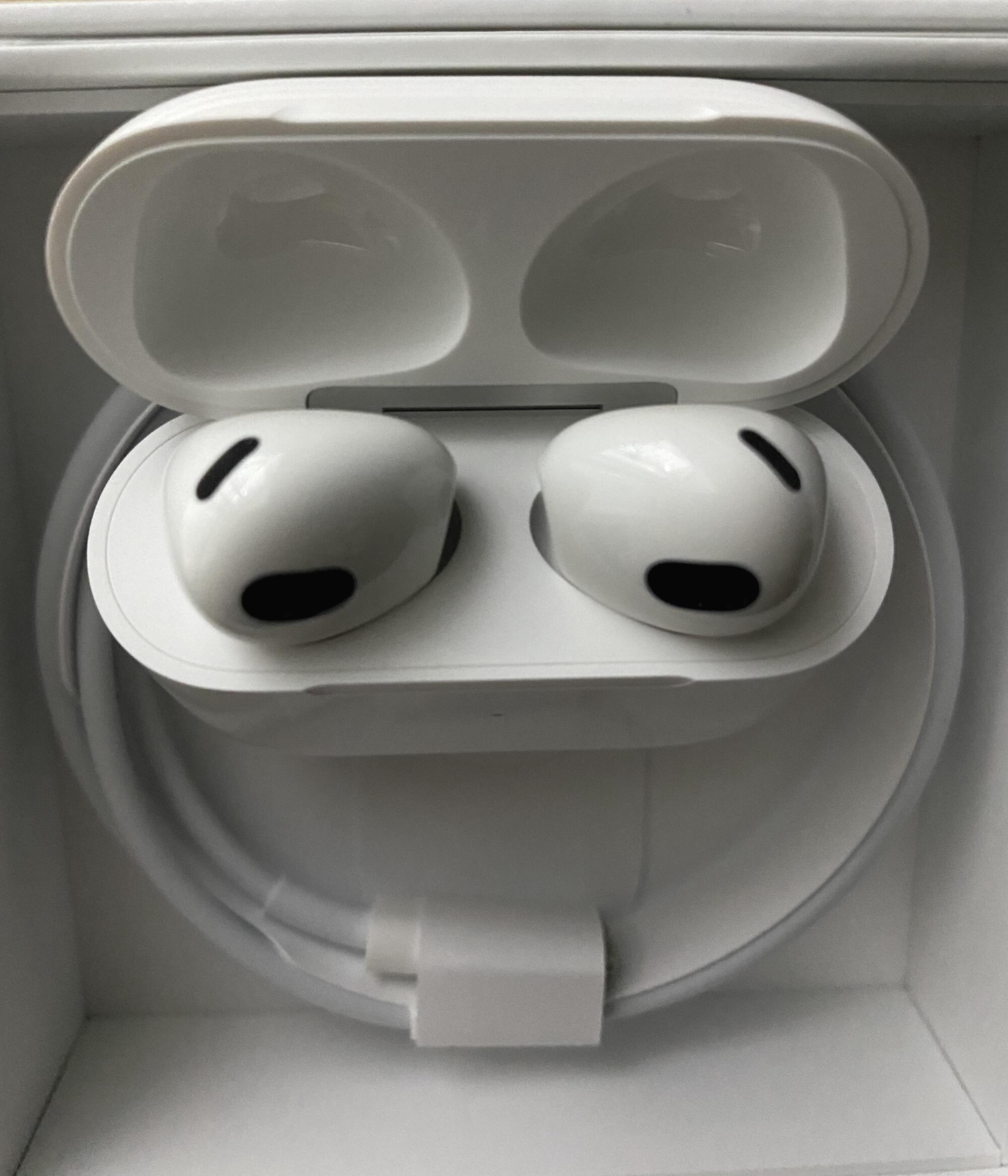 에어팟2세대의 각 헤드가 밖을 보게끔 케이스로 들어갔다면, 3세대에서는 각 헤드가 안쪽을 마주보게 충전이 된다. 나는 지금 방식이 더욱 마음에 든다. 좀 더 직관적이다.