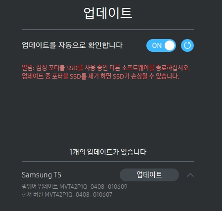 외장 하드디스크 to SSD T5의 전송속도는 40~60 MB/s 정도이다.