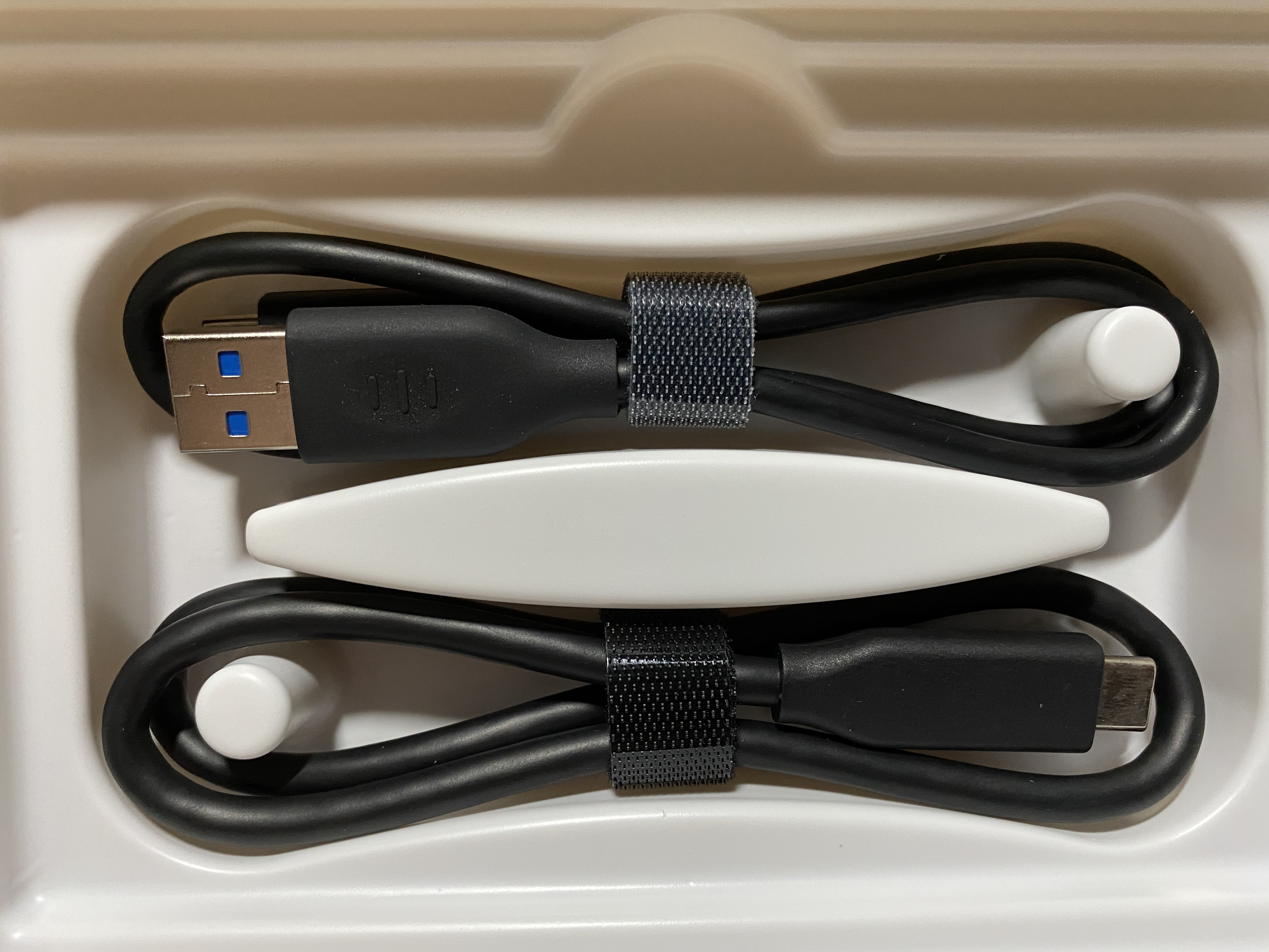 제공되는 케이블은 USB 3.1 type C to C, USB 3.1 type C to A가 있으며(USB 3.1 gen 2를 지원하는), SSD에는 항상 type C가 연결된다.
