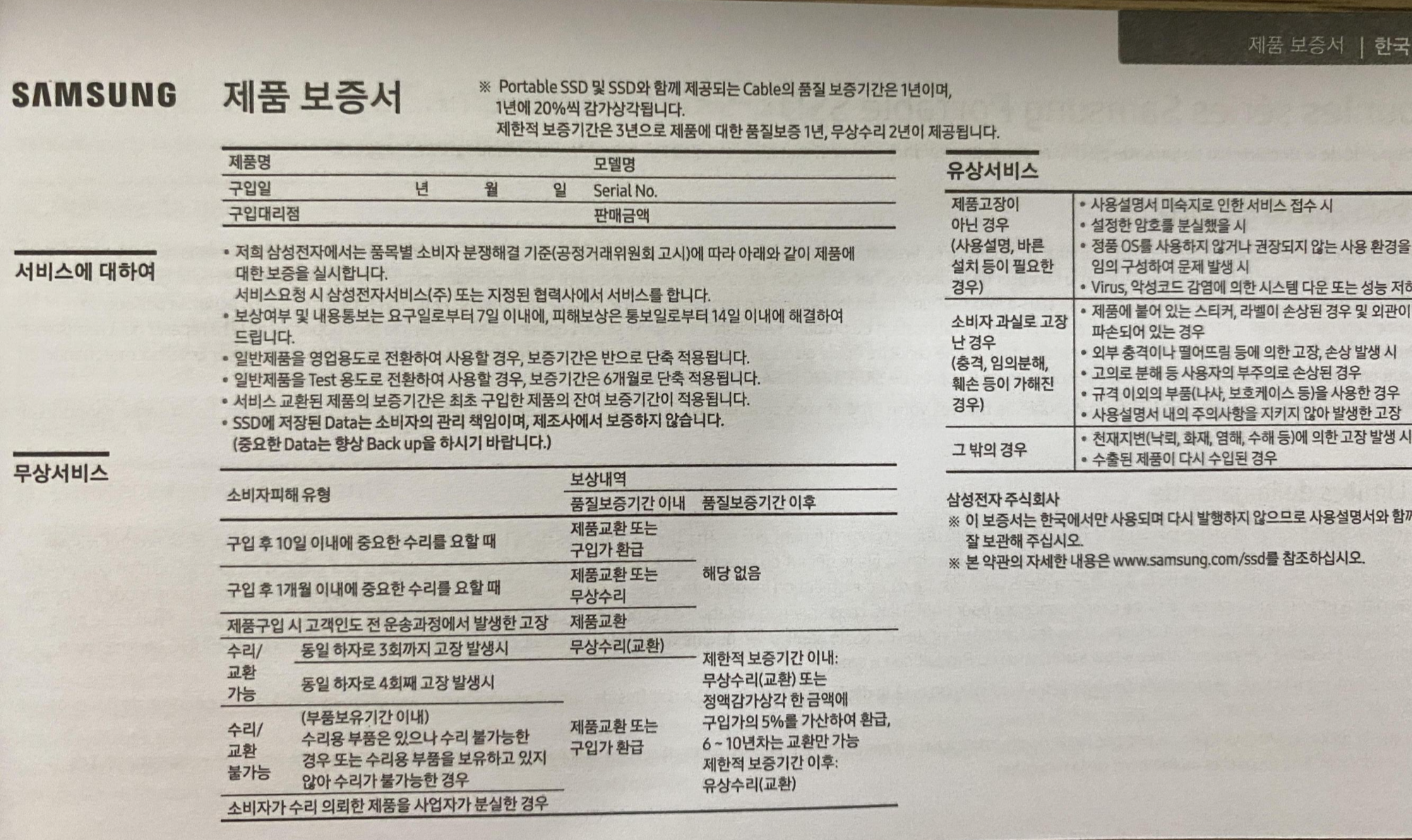 제품 보증에 대한 자세한 설명은 아래와 같으니 주의가 필요하다.