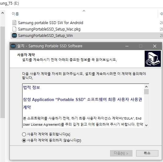 노트북에 연결하면, 별도의 드라이브가 하나 생성되는데, 그안에 1개의 프로그램이 들어있다.