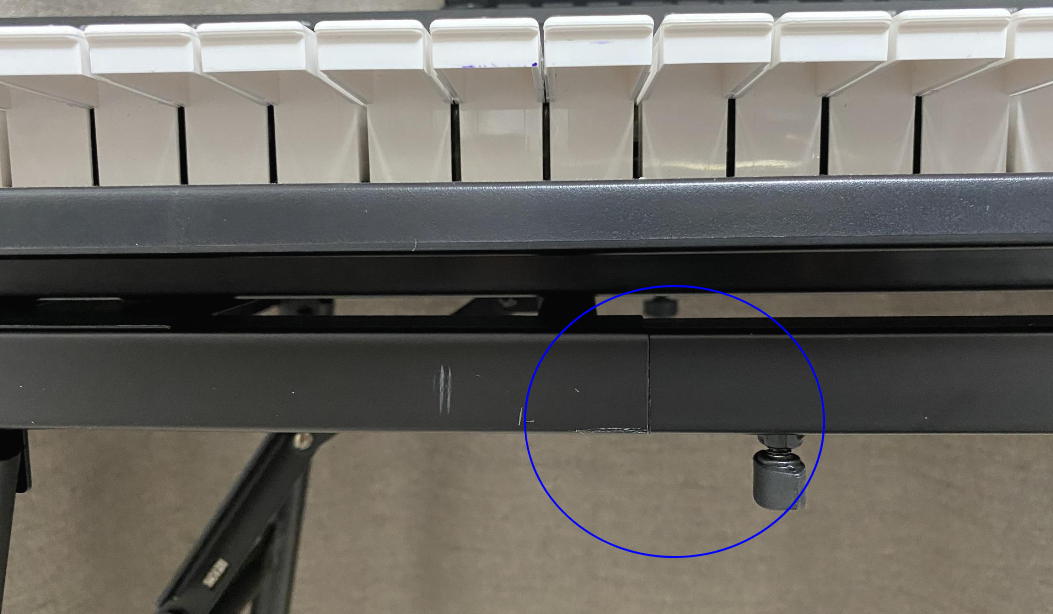 피아노의 너비에 맞춰서 책상 다리 역시 늘어날 수 있는데, 동그라미로 표시한 부분이 늘었다 줄었다 하면서 너비에 맞출 수가 있다.
