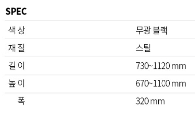 판매처에서 제공하는 그 크기를 보면, 최소 높이가 670mm가 되므로, 아이들이 의자에 앉아서 편안한 어깨로 팔꿈치가 직각이 되기에는 생각보다 높은 상태였다.