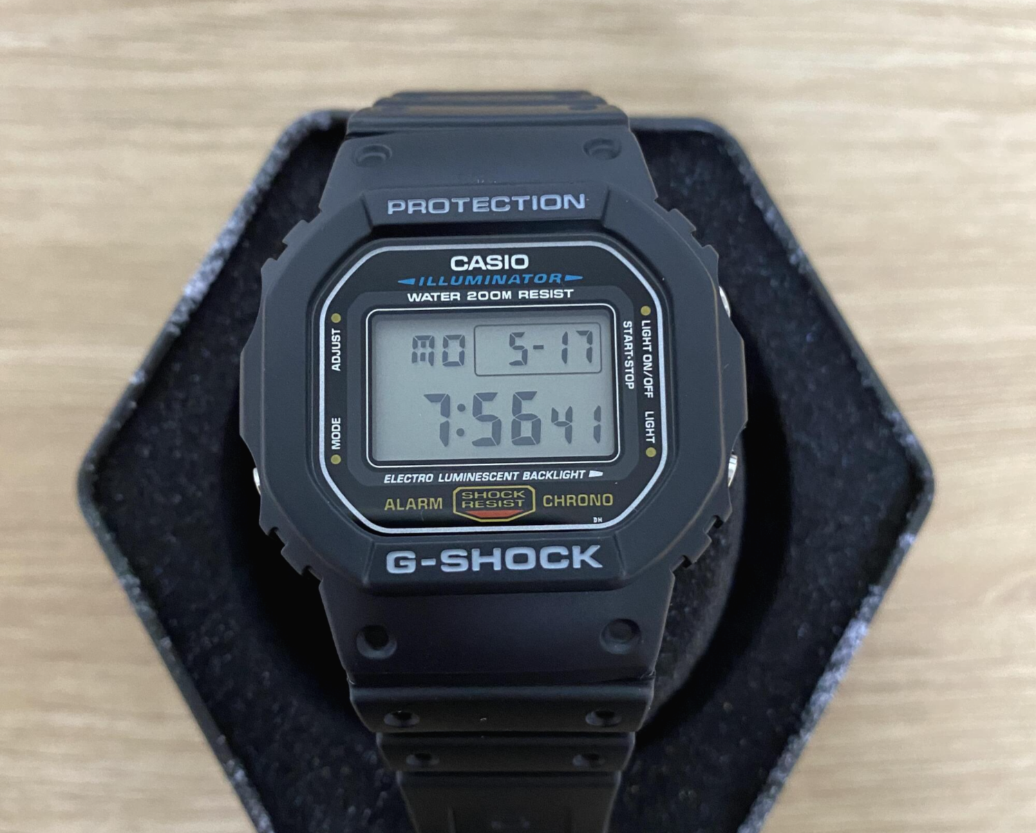 뭐, 오래 고민 하진 않았고, 고장나서 버린 지샥의 크기가 너무 커서 불편했던 기억으로 이번에는 가장 기본 모델로 구입을 했다. DW-5600E-1VDR로, 가장 엔트리 모델이지만 그렇기 때문에 아주 무난하게 착용할 수가 있다. 스펙이나, 타모델과의 비교는 위의 링크에서 확인하면 된다.
