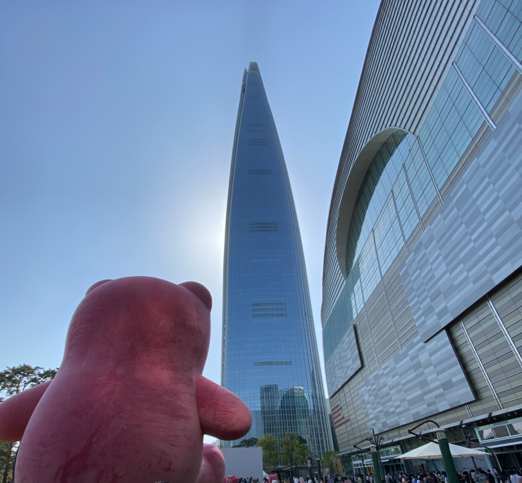 밥을 먹고 나와, 석촌 호수로 향하는데, 커다란 곰 근처에 사람들이 줄을 너무 길게 섰길래, 그냥 뒷모습만 찍어봤다. 뭔지는 모르지만, 엄청 유명한 곰인가 보다. (롯데타워가 정말 엄청 높긴하구나..)