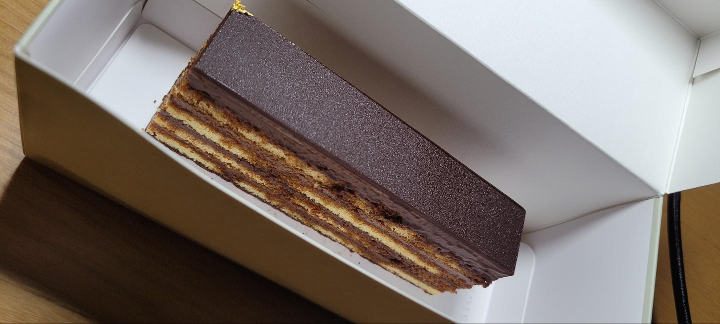 우선 4가지 케이크 중에 유일하게 이름을 기억하고 있는 오페라부터..케이크 이름이 오페라다. 말그대로 다양한 맛을 느낄 수 있다. 티라미스보다는 더 단단해서 엄청 물렁거리지는 않는다. 분명히 맛은 있는데, 개인적으로 이정도 가격을 주고 사먹을 정도의 재력이...ㅠㅠ. 사이즈를 재보진 않았지만, 사진에 보이는것 만큼 크지는 않다.