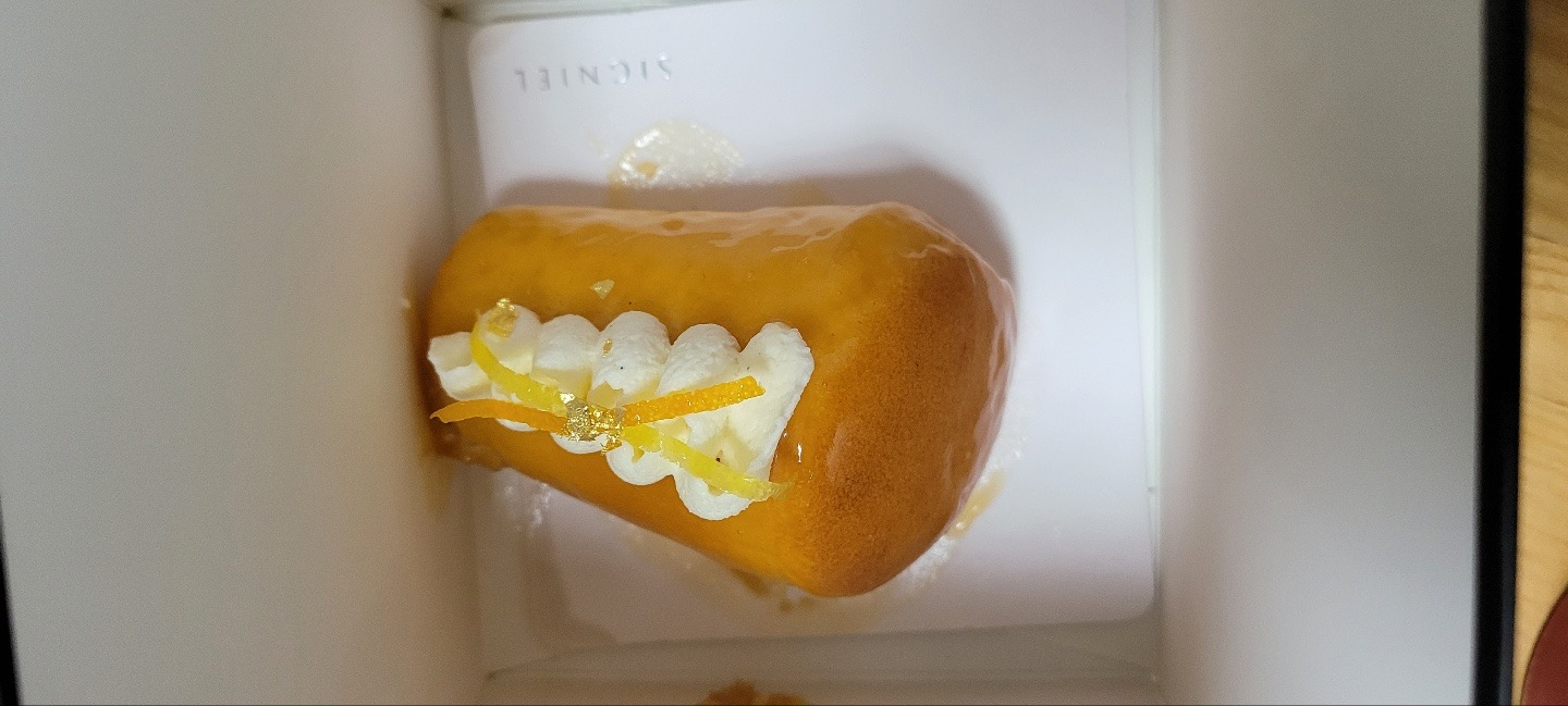 그 다음은 상큼한 맛이 일품이었던 케이크..역시나 이름은 기억이 안난다. 속은 부드러운 빵으로 되어 있다. (옆에서 시트러스 바바라고 알려줬다..) 애들 주먹만한 크기이다.
