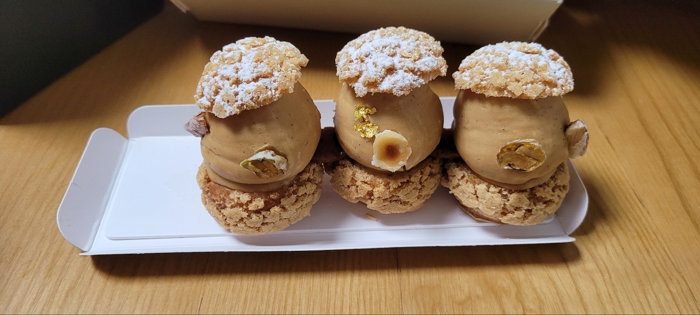 안을 열어보면, 고소했던 쪼꼬미들 3개가 들어 있다. 가운데는 살짝 단단한 크림이다. 이것도 아주 작은 사이즈.