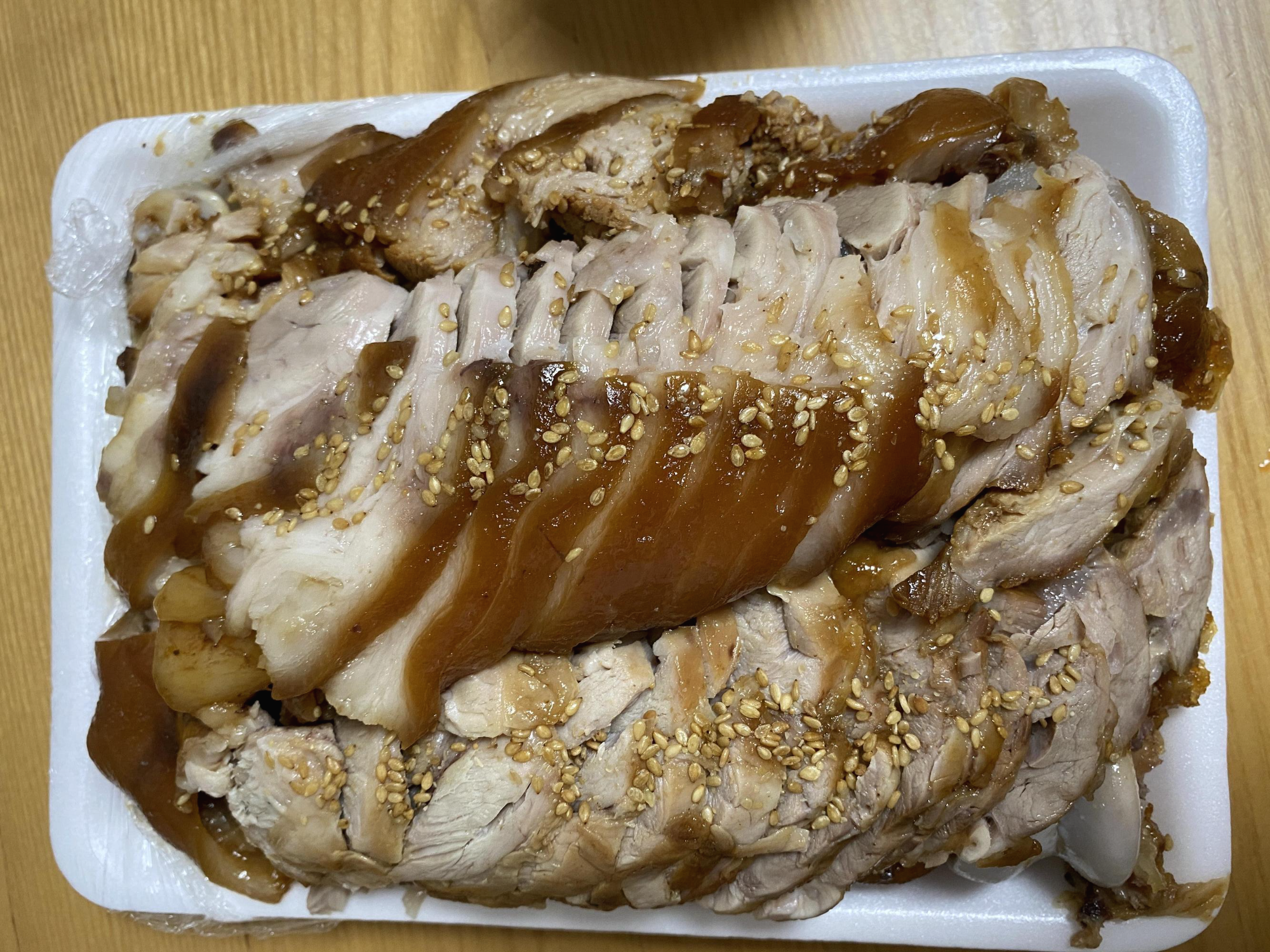 족발을 좀 더 자세히 보자. 과장 조금 보태서, 요 1,2년 사이에 먹었던 족발중에 가장 맛있었다. (그 이전에 먹었던 족발맛은 기억이 안난다) 중자의 양은 다른집 대자보다 아주아주 약간 적은 수준이다. 육질은 매우 부드럽고, 족발 이름에 한방이 붙었지만, 한방향이 많이 느껴지진 않았다. 비계와 순살의 비율이 적당한 수준이었다.